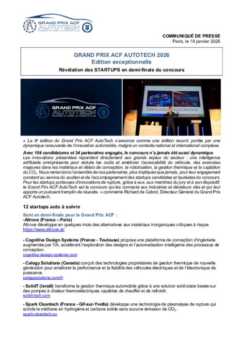 12 startups auto en demi-finale du Grand Prix Acf Autotech