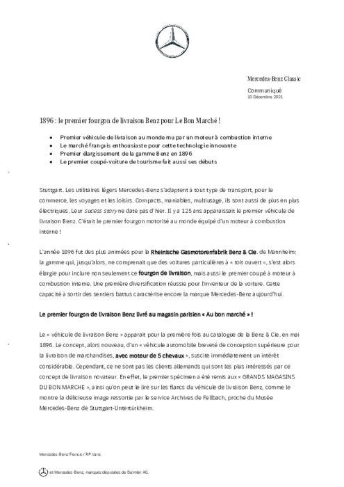 Les utilitaires légers Mercedes-Benz s’adaptent à tout type de transport, pour le commerce, les voyages et les loisirs. Compacts, maniables, multiusage, ils sont aussi de plus en plus électriques. Leur sucess story ne date pas d’hier. Il y a 125 ans apparaissait le premier véhicule de livraison Benz. C’était le premier fourgon motorisé au monde équipé d’un moteur à combustion interne !