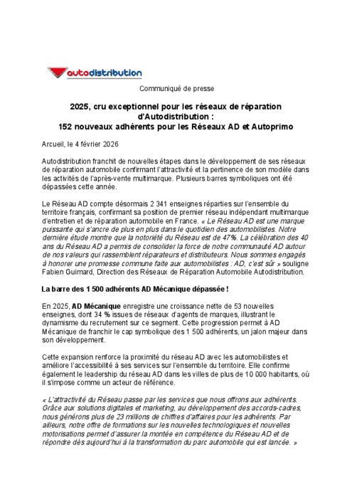 Autodistribution franchit de nouvelles étapes dans le développement de ses réseaux de réparation automobile confirmant l’attractivité et la pertinence de son modèle dans les activités de l’après-vente multimarque. Plusieurs barres symboliques ont été dépassées cette année.