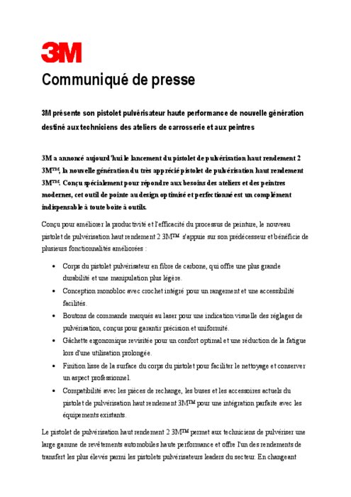 Le pistolet de pulvérisation haut rendement de 3M permet aux techniciens de pulvériser une large gamme de revêtements automobiles haute performance et offre l'un des rendements de transfert les plus élevés parmi les pistolets pulvérisateurs leaders du secteur.
