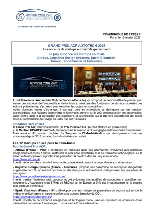 4 startups en lice pour la finale du Grand Prix acf Autotech