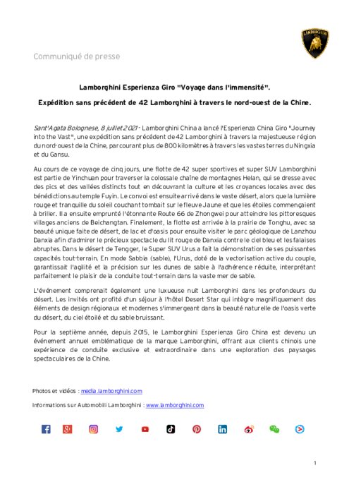 Lamborghini China a lancé l'Esperienza China Giro "Journey into the Vast", une expédition sans précédent de 42 Lamborghini à travers la majestueuse région du nord-ouest de la Chine, parcourant plus de 800 kilomètres à travers les vastes terres du Ningxia et du Gansu.