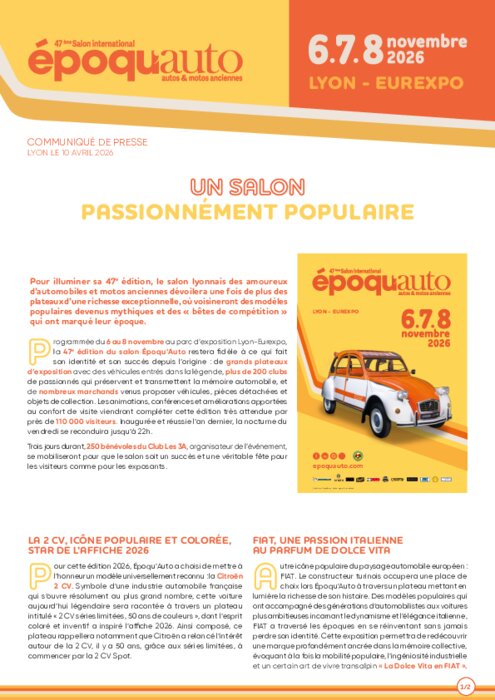 Pour illuminer sa 47e édition, le salon lyonnais des amoureux d’automobiles et motos anciennes dévoilera une fois de plus des plateaux d’une richesse exceptionnelle, où voisineront des modèles populaires devenus mythiques et des « bêtes de compétition » qui ont marqué leur époque.