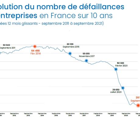 5 311 défaillances d'entreprises au 3ème trim. 2021 (-20,8%)