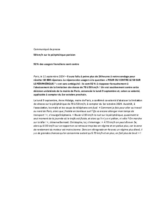 Pour faire entendre cette indignation spontanée, la Ligue de Défense des Conducteurs s’est aussitôt mobilisée et a lancé un sondage en ligne intitulé « Pour ou contre le périph parisien à 50 ? ». En 26 heures précisément, nous avons reçu 10 000 réponses. Le résultat est sans appel...