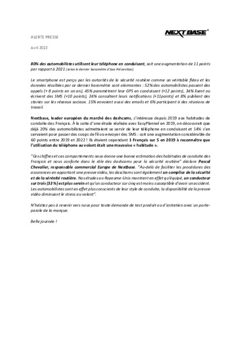 80% des automobilistes utilisent leur téléphone en conduisant, soit une augmentation de 11 points par rapport à 2021 (selon le dernier baromètre d'Axa Prévention). Le smartphone est perçu par les autorités de la sécurité routière comme un véritable fléau et les données récoltées par ce dernier baromètre sont alarmantes : 52% des automobilistes passent des appels (+ 8 points en un an), 45% paramètrent leur GPS en conduisant (+12 points), 34% lisent ou écrivent des SMS...