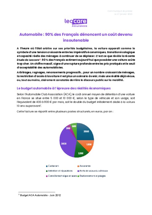 A l’heure où l’Etat arbitre sur ses priorités budgétaires, la voiture apparaît comme le symbole d’une tension croissante entre les impératifs économiques, transition écologique et capacité réelle des ménages à continuer de se déplacer. C’est ce que révèle la récente étude de Leocare*: 90 % des Français estiment aujourd’hui que posséder une voiture coûte trop cher. Un chiffre massif, signe d’une rupture profonde entre les prix pratiqués et le seuil d’acceptabilité des automobilistes.