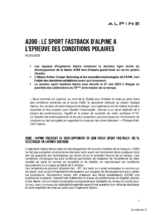 L’ingénierie Alpine est au cœur du développement de tous les modèles de la marque. L’A390 ne fait pas exception et entame les derniers tests avant son lancement dans quelques mois afin de peaufiner les technologies qui feront de lui le prochain fleuron de la marque.
