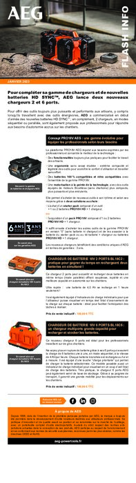 Pour offrir des outils toujours plus puissants et performants aux artisans, y compris lorsqu’ils travaillent avec des outils énergivores, AEG a commercialisé en début d’année des nouvelles batteries HD SYNC ; en complément, 2 chargeurs, en modes séquentiel ou parallèle, sont également proposés aux professionnels pour répondre aux besoins d’autonomie accrus sur les chantiers.