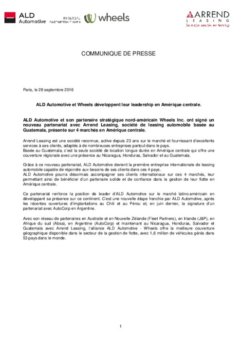 Grâce à cet accord, engageant également Wheels Inc., partenaire nord-américain d'ALD Automotive, le groupe sera présent au Nicaragua, au Honduras, au Salvador et au Guatemala.