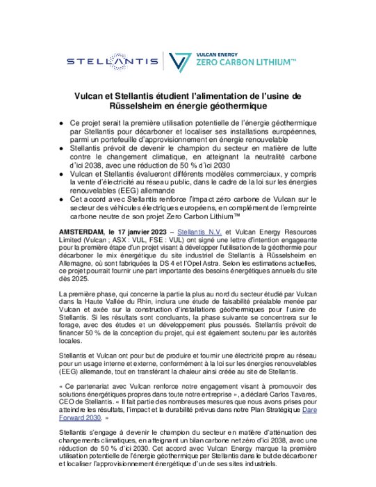 Outre Stellantis, qui en est un des principaux actionnaires de Vulcan, les concurrents Renault et Volkswagen ont également conclu des contrats d'approvisionnement en lithium avec la start-up.