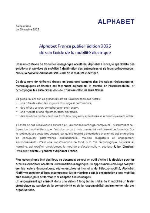 Dans un contexte de transition énergétique accélérée, Alphabet France, le spécialiste des solutions et services de mobilité à destination des entreprises et de leurs collaborateurs, publie la nouvelle édition de son Guide de la mobilité électrique.