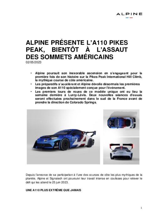 Alpine présente l’A110 Pikes Peak