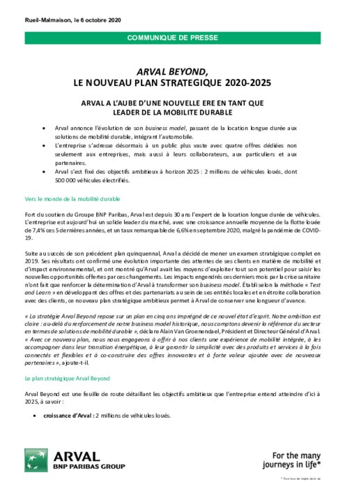 A l'échelle d'Arval France, l'entreprise ambitionne de dépasser les 400.000 véhicules loués avant 2025 (contre 334.699 véhicules à fin décembre 2019) dont 100.000 véhicules électrifiés, mais aussi 15.000 vélos. Arval teste également des scooters électriques et prévoit de lancer bientôt une navette autonome à son siège de Rueil-Malmaison (Hauts-de-Seine).