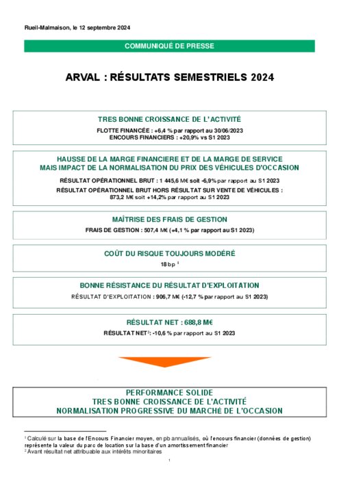Arval continue sa croissance au 1er semestre 2024 avec une flotte financée qui atteint désormais 1 747 846 véhicules dans le monde soit une croissance de 6,4% par rapport à fin juin 2023.