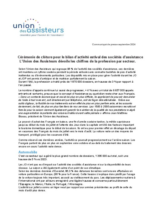 L’Union des Assisteurs commente en chiffres l’activité estivale de la profession. Le secteur automobile reste largement le pôle d’activité le plus important.