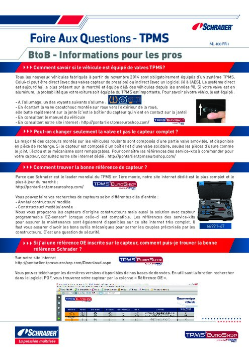 Obligatoire depuis novembre 2014 sur tous les nouveaux véhicules, le système de contrôle de la pression des pneus suscite des questions de plus en fréquentes dans les ateliers. Afin de répondre aux questions des professionnels mais aussi à celles que peuvent poser le client d'atelier, nous avons recensé les questions les plus fréquemment posées. Les réponses sont simples et claires.