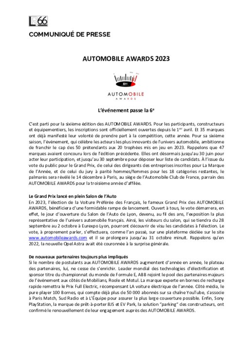 C’est parti pour la sixième édition des AUTOMOBILE AWARDS. Pour les participants, constructeurs et équipementiers, les inscriptions sont officiellement ouvertes depuis le 1er avril. Et 35 marques ont déjà manifesté leur volonté de prendre part à la compétition, cette année. Pour sa sixième saison, l’événement, qui célèbre les acteurs les plus innovants de l’univers automobile, ambitionne de franchir le cap des 50 prétendants aux 20 trophées mis en jeu en 2023.