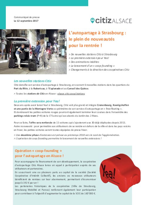 Citiz densifie son service d’autopartage à Strasbourg, en ouvrant 6 nouvelles stations dans les quartiers du Port du Rhin, à la Robertsau, à l’Esplanade et au Conseil des Quinze.