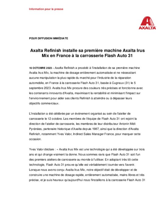 Equipementiers 16 octobre 2023 - 17:32 Ce fut l’occasion pour ses gérants et leur équipe de fêter cette étape clé comme il se doit avec des membres de leur distributeur (Antonin) et des responsables d’Axalta. PDF (119 Ko) Télécharger