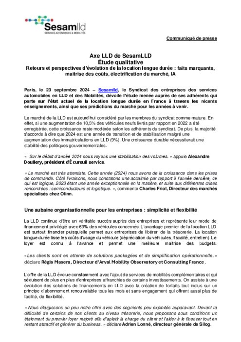 Sesamlld, le Syndicat des entreprises des services automobiles en LLD et des Mobilités, dévoile l’étude menée auprès de ses adhérents qui porte sur l’état actuel de la location longue durée en France à travers les récents enseignements, ainsi que ses prédictions du marché pour les années à venir.