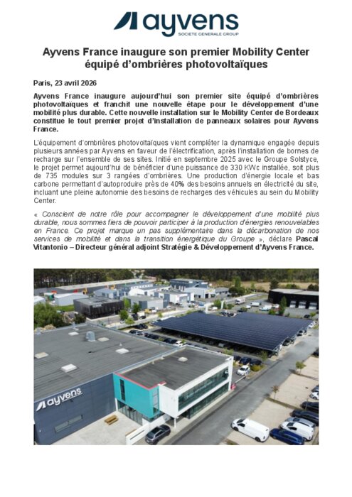 Ayvens France inaugure aujourd’hui son premier site équipé d’ombrières photovoltaïques et franchit une nouvelle étape pour le développement d’une mobilité plus durable. Cette nouvelle installation sur le Mobility Center de Bordeaux constitue le tout premier projet d’installation de panneaux solaires pour Ayvens France.