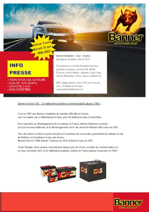 Banner France : 10 millionième batterie commercialisée depuis 1992