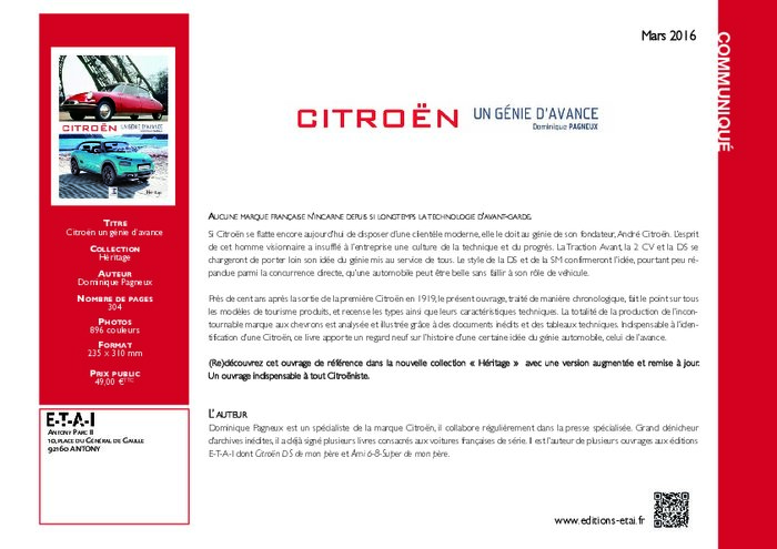 Aucune Marque Française n’incarne depuis si longtemps la technologie d’Avant-Garde. Si Citroën se flatte encore aujourd’hui de disposer d’une clientèle moderne, elle le doit au génie de son fondateur, André Citroën. L’esprit de cet homme visionnaire a insufflé à l’entreprise une culture de la technique et du progrès.
