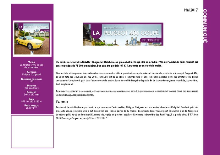 Un succès commercial indéniable ! Peugeot et Pininfarina, en présentant le Coupé 406 en octobre 1996 au Mondial de Paris, misaient sur une production de 75 000 exemplaires. Il en aura été produit 107 631, exportés pour plus de la moitié.