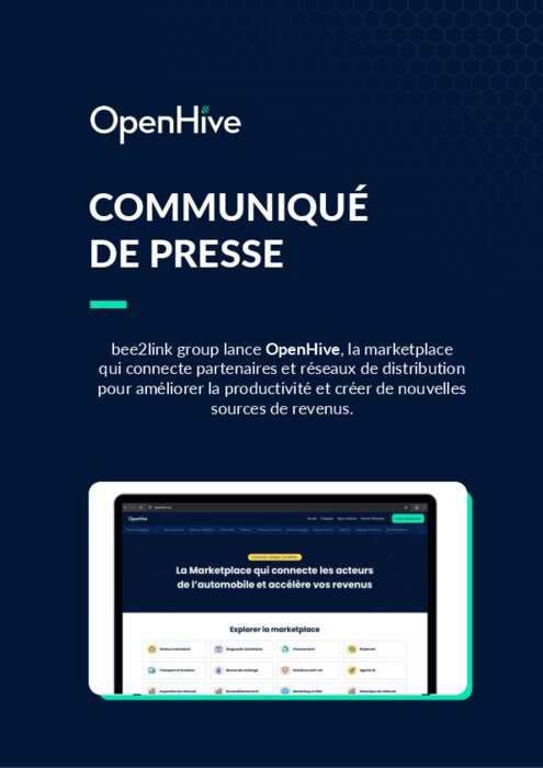 Le groupe bee2link, leader français des plateformes SaaS pour la distribution automobile, annonce le lancement d’OpenHive, une marketplace nouvelle génération conçue pour connecter distributeurs et partenaires au sein d’un écosystème unique, intégré et scalable.