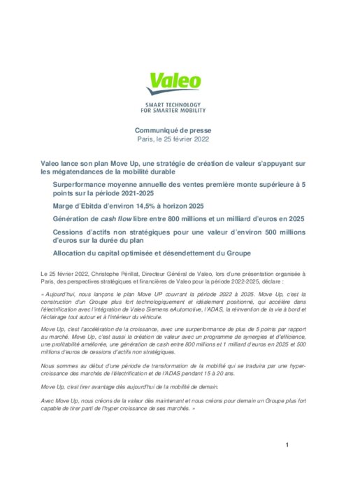 Valeo, qui a une usine en Russie, précise que les objectifs annoncés ne prennent pas en compte "les conséquences potentiellement défavorables sur l'environnement économique et financier, des récents développement de la crise russo-ukrainienne, par exemple une baisse des volumes de production ou une hausse des prix de l'énergie ou des matières premières au-delà des prix connus début 2022".