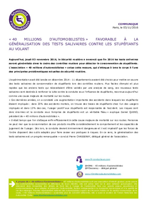 Voir également ci-dessous le Communiqué de Presse de l'association 40 millions d'automobiltes sur le même sujet.