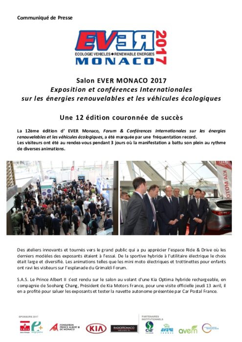 La 12ème édition d' Ever Monaco, Forum & Conférences Internationales sur les énergies renouvelables et les véhicules écologiques, a été marquée par une fréquentation record. Les visiteurs ont été au rendez-vous pendant 3 jours où la manifestation a battu son plein au rythme de diverses animations.