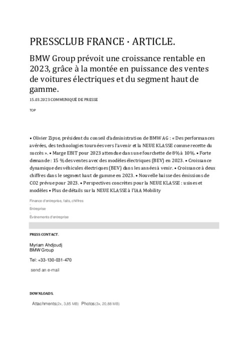 Les principaux relais de croissance en 2023 seront les véhicules 100% électriques ainsi que des modèles du segment haut de gamme comme la nouvelle grande limousine Série 7, le SUV X7 et des modèles de la marque de luxe Rolls-Royce.