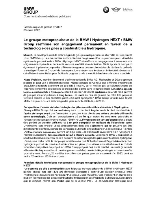 Le développement de technologies de groupes motopropulseurs alternatifs est une priorité pour BMW Group. Le constructeur automobile haut de gamme offre un premier aperçu virtuel du système de propulsion de la BMW i Hydrogen NEXT et réaffirme son engagement à suivre une voie soigneusement pensée et cohérente vers une mobilité sans émissions. Cette approche comprend également la prise en compte des différentes exigences des marchés et des clients dans le cadre de la stratégie "Power of Choice".