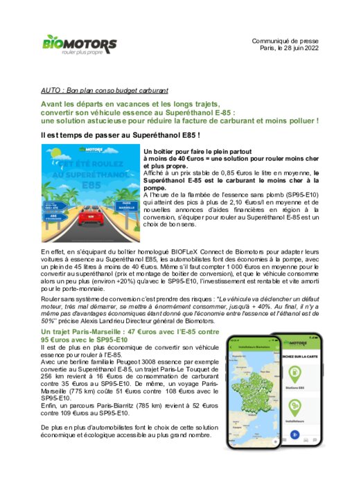 Un boîtier pour faire le plein partout à moins de 40 €uros = une solution pour rouler moins cher et plus propre. Affiché à un prix stable de 0,85 €uros le litre en moyenne, le Superéthanol E-85 est le carburant le moins cher à la pompe. A l’heure de la flambée de l’essence sans plomb (SP95-E10) qui atteint des pics à plus de 2,10 €uros/l en moyenne et de nouvelles annonces d’aides financières en région à la