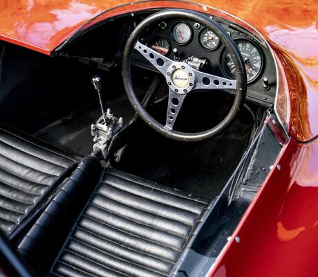 Bonhams est ravi de proposer l'une des plus titrée de toute la famille des magnifiques Ferrari Dino 206S – l'ex-Ravetto, ex-Lo Piccolo, châssis 022. Elle est ici dans la dernière configuration Dino 206SP – Sports-Prototype – avec sa carrosserie allégée, Barchetta ou Spider, telle qu'engagée avec un succès considérable dans le championnat italien de course de côte jusqu'en 1970-1971. Une éventuelle visite à Ferrari Classiche ou chez l'un des meilleurs restaurateurs spécialisés du monde et un jeu de panneaux de carrosserie originaux de 1966-67 pourraient facilement redonner à cette grande classique toute sa beauté originale dans le style de la « mini-Ferrari P3/P4 » de Piero Drogo...