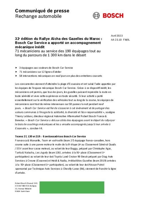 Les concurrentes viennent d’atteindre la plage d’Essaouira et ont salué l’aide apportée par les équipes de l’espace mécanique Bosch Car Service. Grâce à ce dispositif inédit, les mécaniciens ont permis, que tous les jours, les gazelles puissent reprendre la route en toute sérénité et vivre cette expérience en toute sécurité.