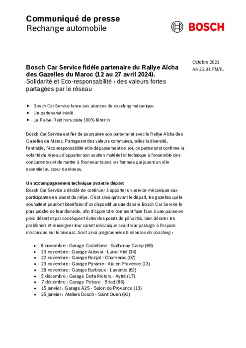 Bosch Car Service est fier de poursuivre son partenariat avec le Rallye Aïcha des Gazelles du Maroc. Partageant des valeurs communes, telles la diversité, l’entraide, l’éco-responsabilité et le dépassement de soi, ce partenariat confirme la
