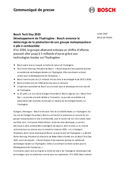 Bosch vise un chiffre d'affaire de 5 milliards d'euros dans l'hydrogène d'ici 2030.