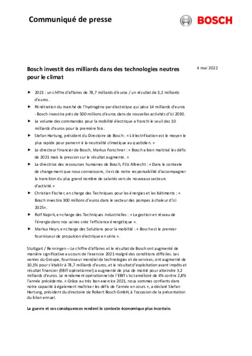 Bosch investit des milliards dans des technologies neutres pour le climat