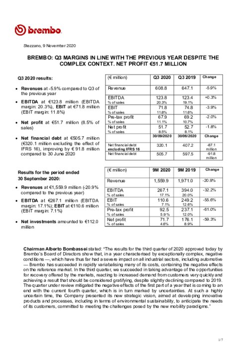 Voir le communiqué détaillé de Brembo ci-dessous (en anglais).