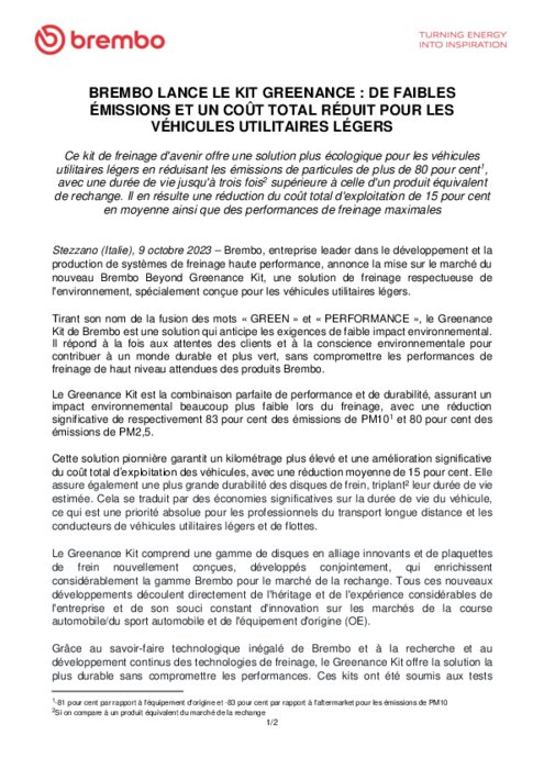 Brembo lance son kit faible émission adapté aux véhicules légers
