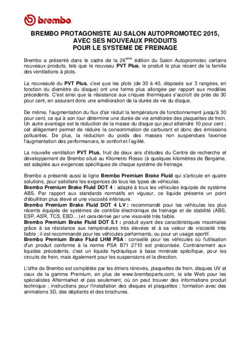 BREMBO : NOUVEAUTES PRESENTEES AU SALON AUTOPROMOTEC