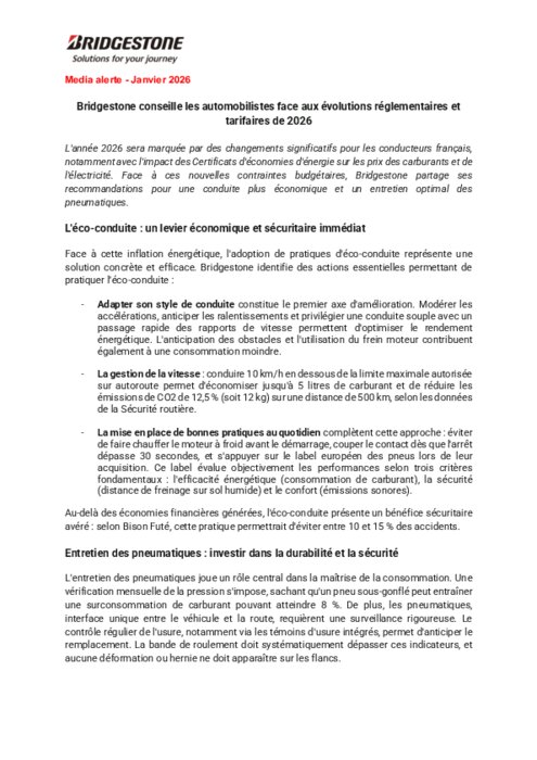 L'année 2026 sera marquée par des changements significatifs pour les conducteurs français, notamment avec l'impact des Certificats d'économies d'énergie sur les prix des carburants et de l'électricité. Face à ces nouvelles contraintes budgétaires, Bridgestone partage ses recommandations pour une conduite plus économique et un entretien optimal des pneumatiques.