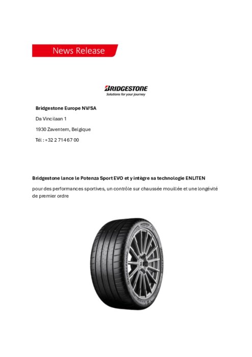 Bridgestone, un leader mondial des pneumatiques et des solutions de mobilité durable, dévoile aujourd’hui son dernier pneu ultra-haute performance, le Potenza Sport EVO, doté de la technologie ENLITEN. Reprenant les atouts qui ont valu de multiples récompenses à la gamme Potenza Sport, le nouveau modèle impressionne par ses performances sportives comme par sa maniabilité sur sol mouillé, sa longévité et son efficacité énergétique. Il sera décliné dans plus d’une centaine de dimensions.