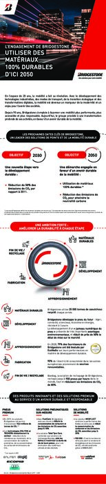 À l’occasion de la sortie de son Rapport de développement durable 2020-2021, Bridgestone a présenté les mesures engagées par l’entreprise en faveur d’un avenir durable de la mobilité. Depuis 90 ans, Bridgestone s’emploie à façonner une mobilité plus performante, plus accessible et plus responsable. Aujourd’hui, le groupe procède à une transformation profonde de ses activités en faveur d’un avenir durable de la mobilité, et s’engage sur des objectifs autour de 2 dates clés : 2030 et 2050.