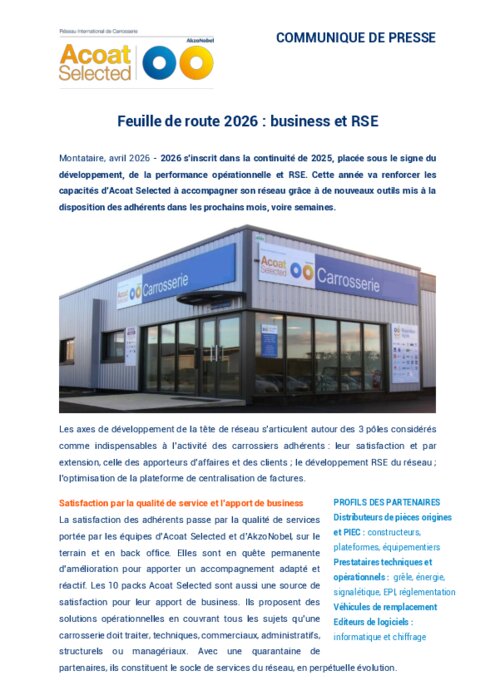 Acoat Selected partage sa feuille de route 2026, articulée autour de ses priorités business et RSE. Ce nouveau cap confirme l’ambition du réseau de carrosserie de poursuivre son développement tout en renforçant ses engagements en matière de qualité, de performance et de responsabilité environnementale.