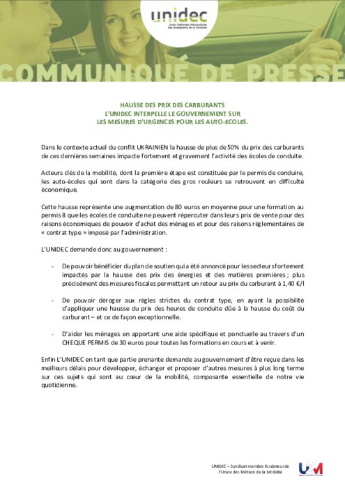 Dans le contexte actuel du conflit UKRAINIEN la hausse de plus de 50% du prix des carburants de ces dernières semaines impacte fortement et gravement l’activité des écoles de conduite. Acteurs clés de la mobilité, dont la première étape est constituée par le permis de conduire, les auto-écoles qui sont dans la catégorie des gros rouleurs se retrouvent en difficulté économique.