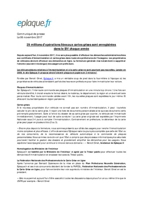 Depuis lundi 6 novembre 2017, il n'est plus possible d'effectuer les démarches administratives liées aux certificats d'immatriculation et cartes grises dans toutes les préfectures de l'hexagone. Les propriétaires de véhicules devront effectuer ces démarches en ligne. La fermeture générale vise notamment à supprimer l'attente (souvent très longue) des usagers en préfecture.
